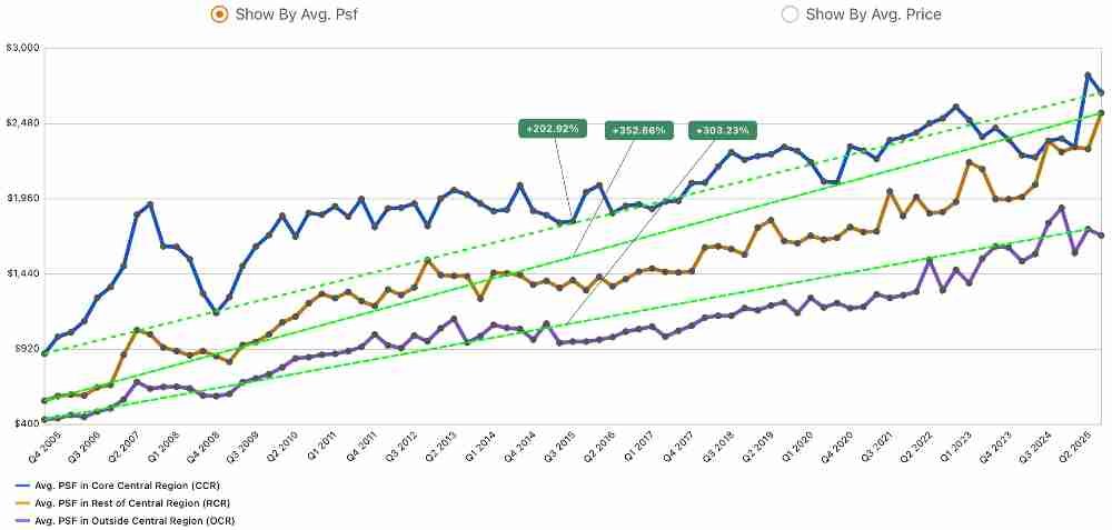 Historical data have shown consistent capital appreciation (refer to Chart 1 above), supported by infrastructure improvements and urban renewal initiatives.