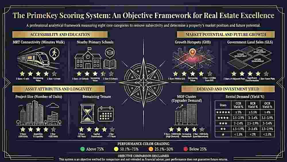 • Comparability Across Property Types: Whether evaluating a new launch, a resale condominium, or an executive condominium, PrimeKey provides a consistent scoring basis - enabling genuine like-to-like comparison.